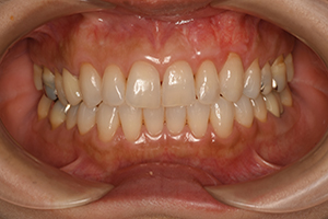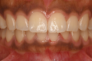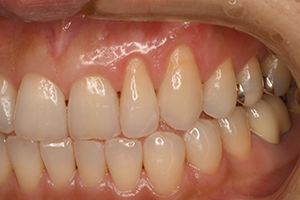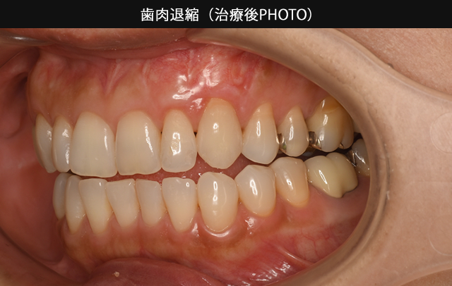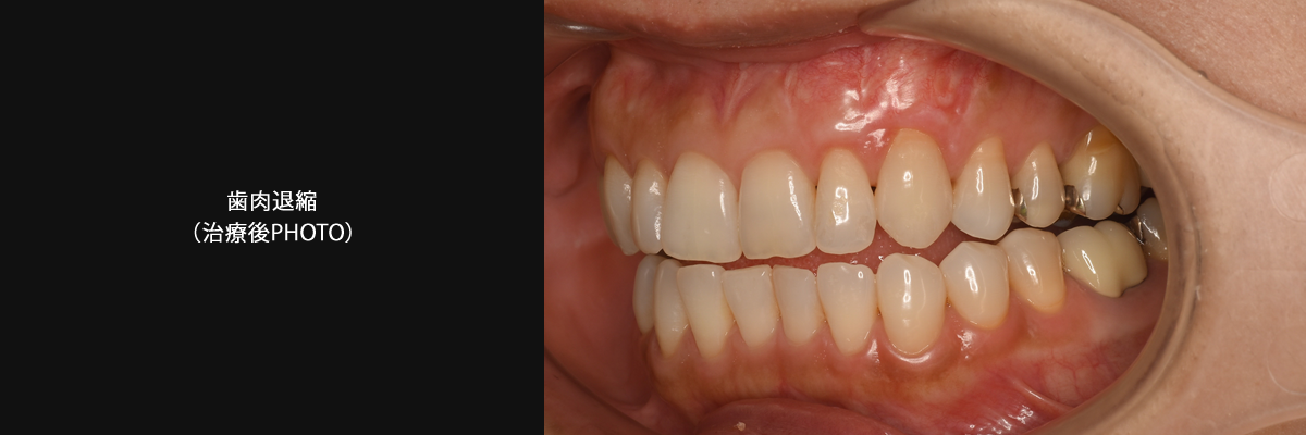 歯肉退縮による審美障害。歯肉移植を行い改善を図りました。