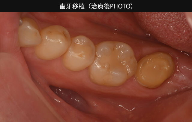 幸運なことに状態のいい親知らずが残っていたため、歯牙移植を行った症例です。