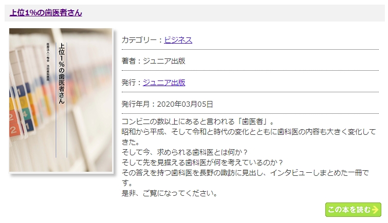 新刊「上位1%の歯医者さん」は、Digital Book Japan様に