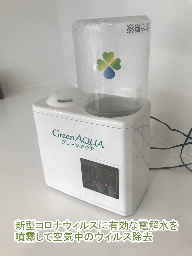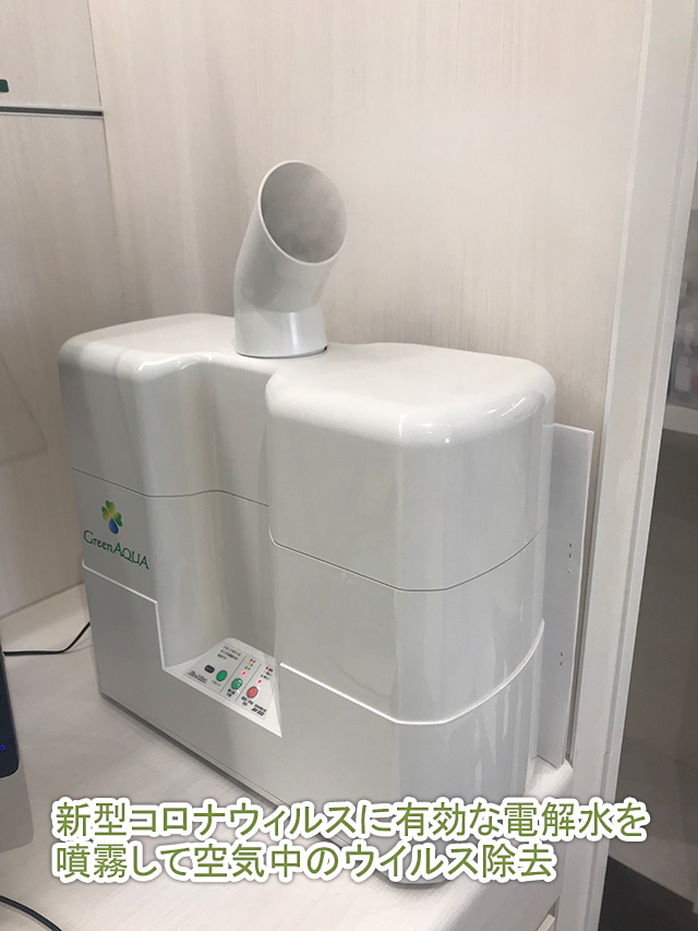 待合室・診療室 新型コロナウィルスに有効な電解水による空間洗浄(空気中のウイルス除去)